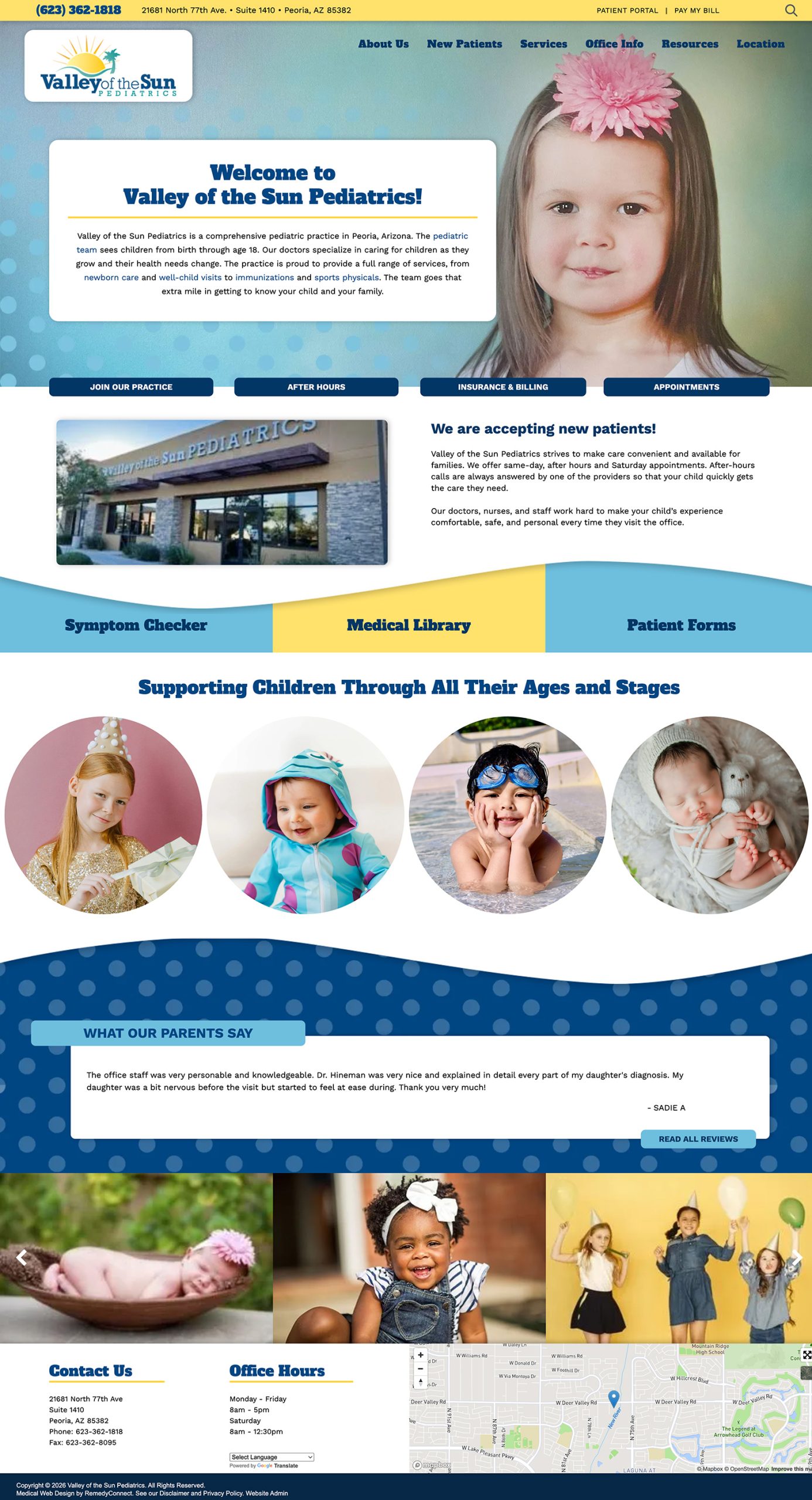 Graphic design and user interface design for Valley of The Sun, a pediatric practice in Arizona.